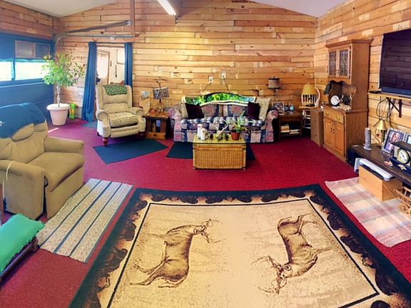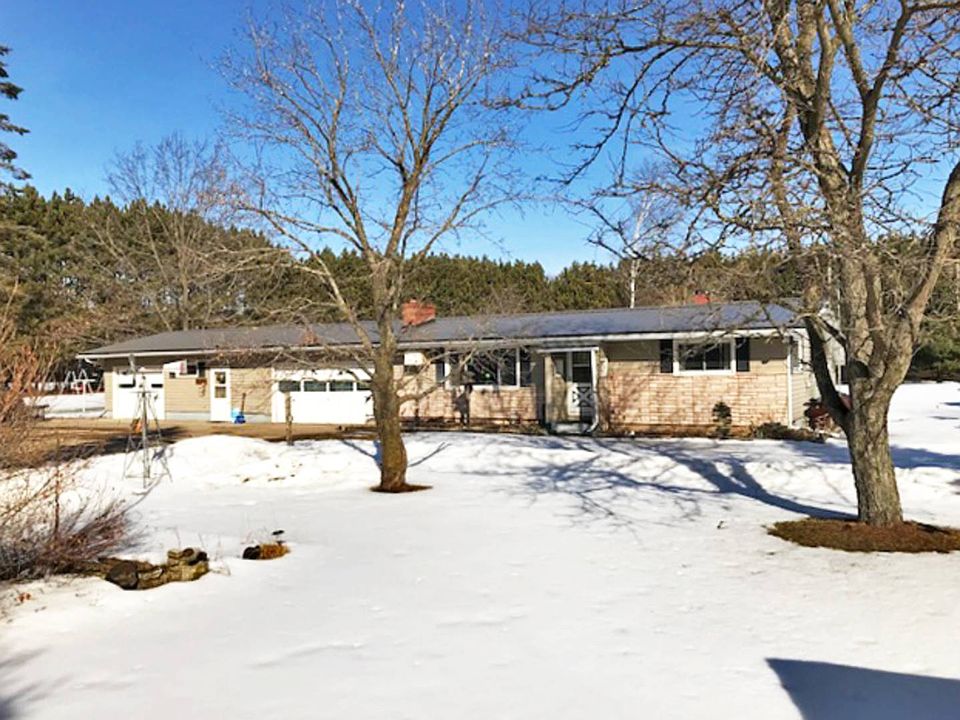 L-8029: MOVE-IN-READY 3 BEDROOM HOME W/ WORKSHOP ON 3.75+/- ACRES. Open concept kitchen/dining room, living room w/ wood fireplace, 3 bedrooms, 1 full bath, and bonus rooms for additional living or storage. Full basement w/ laundry and nice rec room. Attached insulated, heated garage is finished, great for entertaining! Plenty of storage for the toys w/ a 40'x50' steel shed/workshop, 13'x19' utility shed and 12'x12' wood shed. This 3.75 acre property also has a nicely landscaped pond, garden, grape vines, and various fruit trees all bordered by mature pine trees perfect for privacy! Recent updates include furnace, metal roof, and updated bathroom.