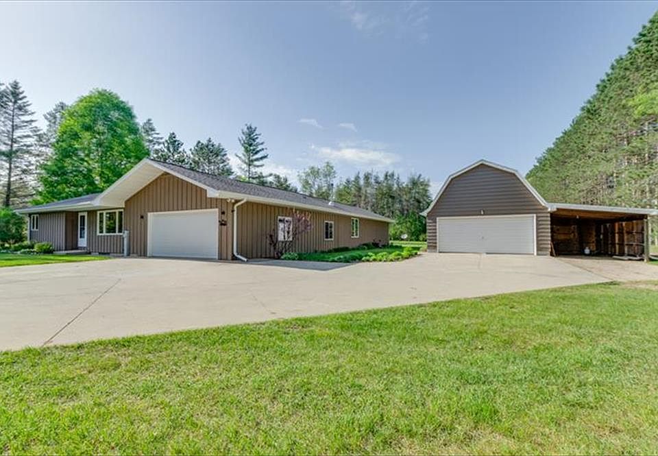 Marinette County, Crivitz ranch home in Twin Bridge area. UTV/ATV trails across the road, near boat landings and waterfalls. 3 bedrooms, 2 bath, large family room w/T&G ceiling, 2 wood fireplaces situated on a 3 acre wooded lot. Includes a hot tub, fire pit and large patio. Additional detattched, heated garage. Central air added in 2022. Well, septic and water testing completed. Well maintained inside and out. Many updates, a must see! UPDATES/FEATURES:UTV/ATV/Snowmobile trails across the street, Kitchen updated 2015, 220 line in detached garage that is heated/insulated w/a 12x23 lean to, attached garage is insulated with newer concrete and drain (2017), 18x20 patio w/fire pit, Well pump and tank (2004), GFA/CA (2022), Addition built in 1999
