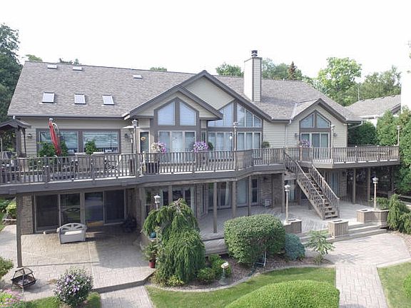 Executive Lake Home on 155 acre Potters Lake. 100' Level Frontage. Courtyard, Patio and Porch all stamped concrete plus extensive masonry and landscaping. Wrap around 2 tier deck adds amazing views. Interior features Gourmet kitchen w/granite countertops, convection oven, flat range, warming drawer, butlers pantry & more. Kitchen, Exec Office, Master BRM w/Marble Fireplace and Vaulted Living Rm share fantastic lake views and deck access. Indoor swimming pool w/Jacuzzi & Swim jets, Hardwood floors, Hydronic heat, 2nd Kitchen in LL Rec Rm, Possible 5th BRM in loft. Available for Summer. Call Now