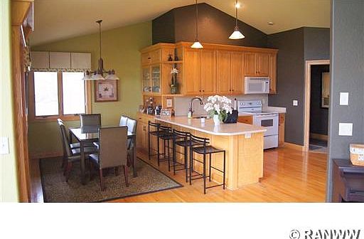 4 BR, 3-1/2 BA, oversized 2 car attached, finished garage, architectural vaulted ceilings, wood floors, premium wood trim & doors, gas fireplace on main level, wood burning fireplace in basement, walkout basement, workshop with garage door in basement, stairs that lead from garage to basement, in-floor heat, large picture windows overlooking the valley pond & wildlife, blacktopped driveway. Taxes are approximate.