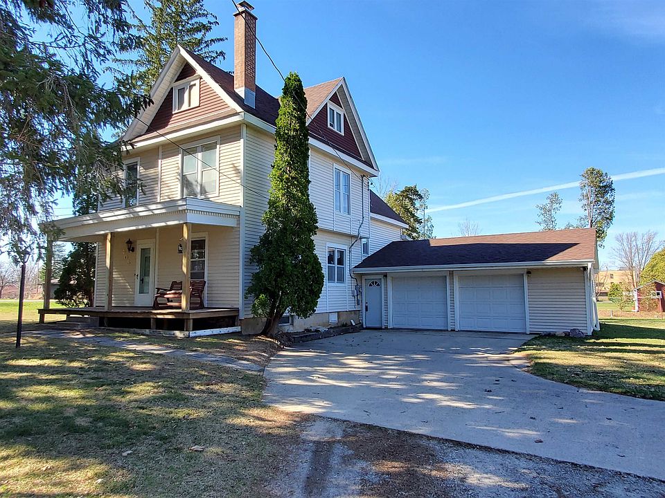 Pictures can't capture the charm of this well-maintained character filled New London home with its spacious yard and additional garage and storage shed. Welcoming front foyer with its original detailed woodwork and staircase; french doors; large kitchen w/lots of cupboards and counter space w/room for a breakfast area; den w/door to back deck; laundry on 2nd flr; updated electrical; low maintenance metal siding; all within walking distance to the hospital. Easy access to Hwy 45. Minutes from the Valley. Wood burning fireplace is currently non-functional. Some Electric baseboard heating units. Extra garage is currently leased month to month.