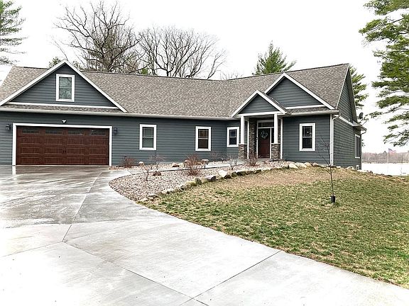 Contact 920-639-8404 for more info. Come enjoy this beautiful 2.5 acre level lake lot home on Curtis Lake in Coloma with 130 ft. frontage. Custom built in 2016 this home boasts a spacious open floor plan, vaulted ceilings in living and dining room and 9 ft ceilings throughout rest of the main floor. In-floor heat will keep you cozy in the basement and garage. Garage comes equipped with separate heated storage room and stainless steel countertop with sink to get all of your outdoor work done. There is an additional storage shed plus lean-to where you can keep all your extra outdoor equipment and toys. Kitchen has custom cabinetry, quartz countertops, and a spacious walk-in pantry. Find extra peace of mind with the fully-equipped security system throughout the home. With five bedrooms and three bathrooms there is plenty of space to host family and friends no matter the season. Enjoy nights on the beautiful patio done in stone pavers with walkway to the stone paved fire pit. Beach frontage with walk-in entry to the sandy lake brings fun for all ages. Whether you plan to make this your home, or home away from home, wonderful memories will be made here!