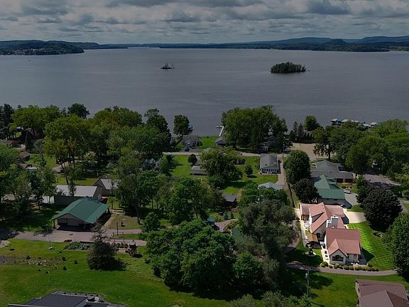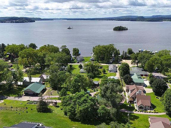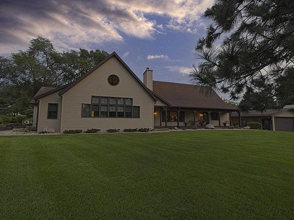 Lake Views, Luxury Spaces & Room for All Your Toys! LAKE LIVING WITHOUT THE TAXES! This property has it all?close to Lake Wisconsin with lake view from your front porch, your new place includes newer 40x50 insulated shed w/concrete floor perfect for boats, pontoon, jet skis, koi pond & pier & solar aerator. Fenced garden w/water. Bridges & curbed UTV paths around property makes getting around a breeze. Updated kitchen with large island, 2 gas-start wood fireplaces, STUNNING family/entertainment room w/solid wood floor & pool table. 3rd BR was a hot tub room (drain under floor) or sunny office. Sauna, Two primary ensuites?one up, one down. Heated 4-car garage w/workshop, storage, water. 2 furnaces, 2 AC, Generator. ALL of this and just a short 450 ft to the boat launch.