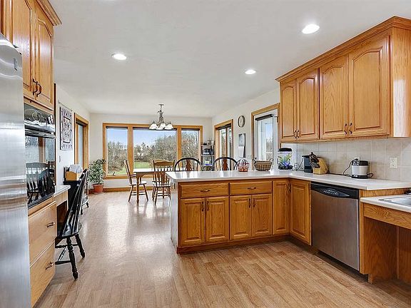 Gorgeous panoramic views of parklike green space/woods w/ complete privacy from this beautiful 10 year old walk out ranch. Included is large Pole Building (currently used as auto repair shop) which has heat, water, exhaust system, drainage, bathroom, office. 32 acres are tillable, 5 acres of woods. Has outdoor wood burning furnace which heats home & shop. Two water heaters, self starting constant water velocity pressure system. These are just a few of the features of this unique property!