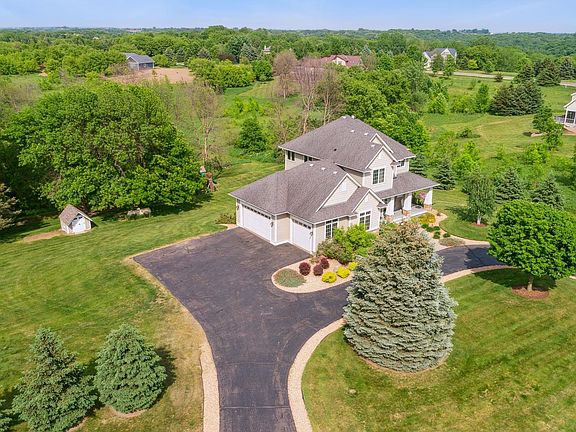 Nestled on a cul-de-sac within Trumpeter Valley, this remarkable property spans 3.3 acres of captivating beauty. Surrounded by 260 acres of private parkland, it offers a sanctuary of nature w/ 9 miles of walking trails. You'll enjoy shared access to the Mississippi River frontage. The property boasts ample storage w/ an oversized 3 car garage, providing convenience and space for all your belongings. Inside, the home features 4 bedrooms and 4 bathrooms, including a private master suite w/a generously sized and sweet. The upper-level laundry adds further convenience to your daily routines. Hardwood oak floors on main level, exuding warmth elegance throughout. The open kitchen, adorned with stone countertops, serves as a focal point for culinary creativity and entertaining. With large windows framing breathtaking views, the property offers an abundance of natural light and a sense of tranquility, ensuring privacy and peaceful living! Don't miss this opportunity.