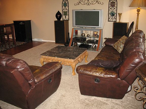 Sit back and relax, it's all been done for you! Updated, move-in ready 2 bedroom, 1.5 bath townhouse style condo with private entrance. Entertain indoors in the dining room that opens to the living room to interact with your guests. Outside, enjoy barbeques on the concrete patio with large green space that extends your entertaining area. Love to cook? You'll love the completely remodeled kitchen including new cabinets, countertops, backsplash and appliances. Updates in baths include new vanities, flooring, lighting and whirlpool tub. Bring your design ideas to compliment the freshly painted neutral interior. Full basement for storage and laundry area. Attached garage with additional parking spaces. Home warranty included. Not approved for FHA financing.