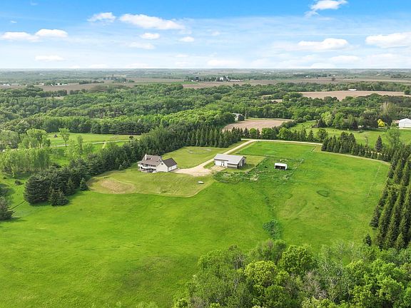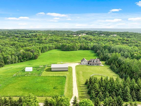 Fiber-optic ready for internet and phone! Don’t miss this stunning 4-BR custom home on 20 acres just outside of Prescott! The charming wrap-around porch welcomes you into the bright, open main level, featuring vaulted ceilings, beautiful wood flrs, stone fireplace, & gorgeous views! Lovely main lvl owner’s suite w/ wood flrs, walk-in closet, & full BA w/ double sinks & separate soaking tub & shower. The gourmet kitchen features cherrywood cabinets, center island, walk-in pantry, & SS appliances. There are 2 BRs w/ large closets & a full BA on the upper lvl. The walk-out LL features in-flr heat, wood fireplace, 4th BR, rough-in for BA, & a huge unfinished area that would make an amazing rec room. Enjoy the expansive views from the maintenance-free deck! This property also includes an attached heated & insulated 3-car garage w/ in-flr heat & finished bonus rm above, a 64x42 pole barn w/ electricity, two 10x12 stalls, hay storage, pastures, & wooded trails! Truly an amazing property!