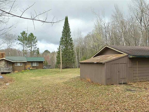 Beautiful 4 bedroom home is situated on 40 acres. Home features wood burning stone fireplace, large master bedroom, formal dining, bar area, family room with built in library, wraparound deck and a large detached garage. Home is located near Lake Kathryn, Perkinstown Winter Sports Area, snowmobile trails and the Chequamegan National Forest.