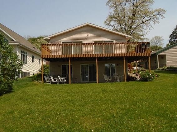 Lakeside living at its best! Lovely exposed ranch nestled in the popular fishing bay of Okee on Lake WI. Lovely vistas & a lush lawn are just the perfect start of this year round property. Cathedral ceiling encompasses a wonderful great room. Double patio doors take you deck side. Enjoy the views via large kitchen, with center island, & fireplace in living room. Large bedrooms & lower level rec area, den/3rd bedroom. 3 car garage with loft storage. Turnkey property!
