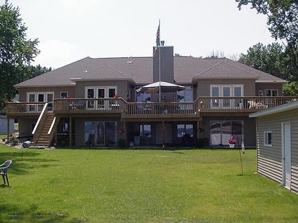 Private lake home! Located on a Cul-de-sac, this spacious ranch w/9ft.celings and an open floor plan accentuates the views through the many lakeside windows. Over 100 ft. of frontage, 2 fireplaces, hardwoods, tile, cherry cabinetry, large pantry, Corian island, 1st floor laundry, master bedroom & office, walk-in closets. Large wetbar in LL with full walkout to your boathouse! 3 car att. garage