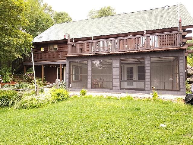 HOW SWEET IT IS! The Big Somo River meanders through this 40 acre parcel featuring a 1990 full log home, 4000+ sq ft of living space, 3-season sunroom, and a large deck. Main level offers large open concept design, wood laminate carpet flooring, wood burning fieldstone fireplace ducted to heating system, master bedroom and full bath with double sink and walk-in shower, large galley style working kitchen with top of the line appliances including recessed stackable washer/dryer. The 2nd level has private bedroom and bath and an open loft area overlooking the living area. Lower level is also open concept design including small kitchen, bedroom, full bath with 2nd laundry, billiard/rec room, workshop, and 3-season sunroom leading to professionally landscaped patio and garden areas. The property has been meticulously maintained and offers plenty of unique extras that words and pictures cannot properly portray.