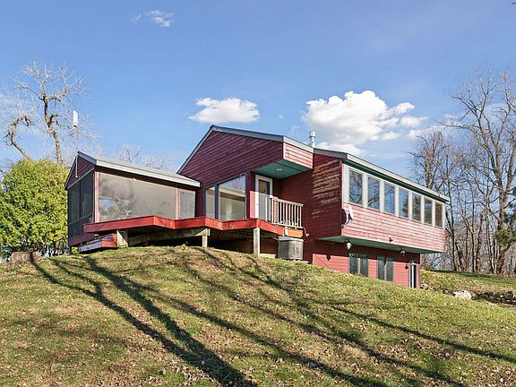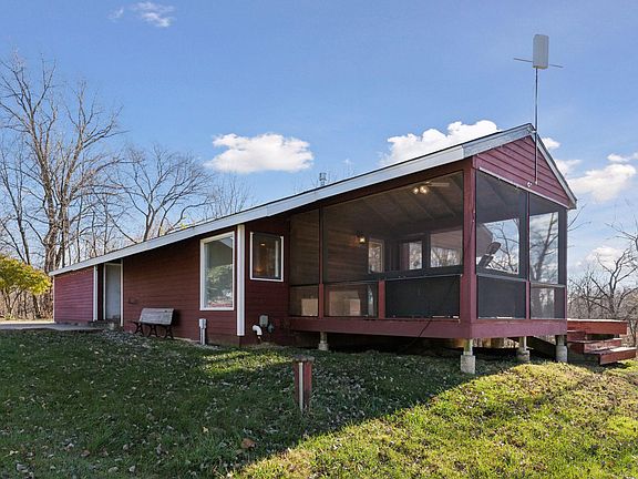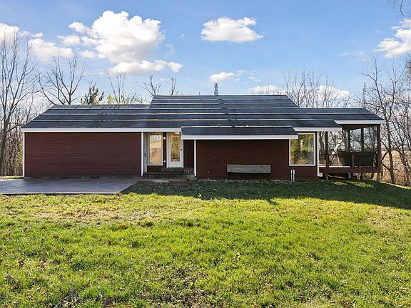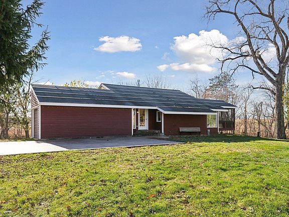This extraordinary custom-built home, inspired by Frank Lloyd Wright, offers a one-of-a-kind retreat on 8 acres of serene rolling hills. A large stamped patio welcomes you, while a screened-in porch and deck on the side provide serene spots to enjoy the outdoors. The home’s unique layout features expansive windows that flood each room with natural light, offering stunning views of the landscape from every angle. The property includes a versatile pole building, a granary, and a charming chicken coop, adding rustic character and functionality. Just 35 minutes to Red Wing, it’s perfectly situated for peaceful living with easy access to amenities.