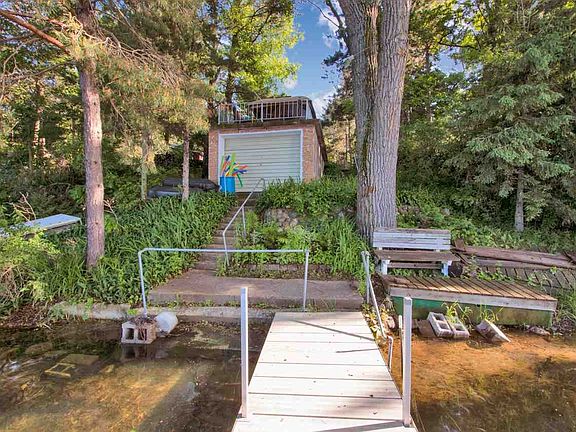 Fish Lake lake house... let this one be your magical getaway. Nestled in tall pines with southern exposure & great solid sandy bottom swimming on a gorgeous 177 acre lake. There is a boat house & gazebo overlooking the lake for your evening cocktail enjoyment. This 3 bedroom, 2 baths, offers numerous updates & an extra "in-law cabin" with electric & plumbing. Enjoy central air, newer bamboo flooring, newer windows & furnace, main floor laundry, lower level rec' area & workshop. Located minutes from I-39, the gorgeous Greenwood Wild Life Area, the Ice Age Hiking Trail and the Mecan River headwaters.