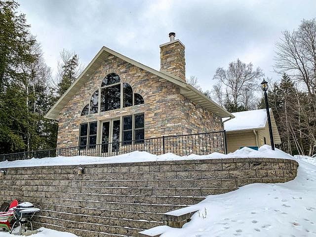 Looking for a house on a clear, deep lake with sandy frontage? This newer home is in the Harrison Hills area, which is known for its rolling hills and is surrounded by public hunting land. This area has something to offer in every season: ATV trails, snowmobiling, boating, and hunting is available right here. House features 2 bedrooms, 1-1/2 bath, master bedroom with unfinished master bath, large kitchen with walk-in pantry, cathedral, panel ceil with metal arch, 6-panel doors, wood stone fireplace, and a large patio with a great view of the lake and hills. Full, unfinished basement for plenty of storage. Seller is finishing exterior with stone and smart siding.
