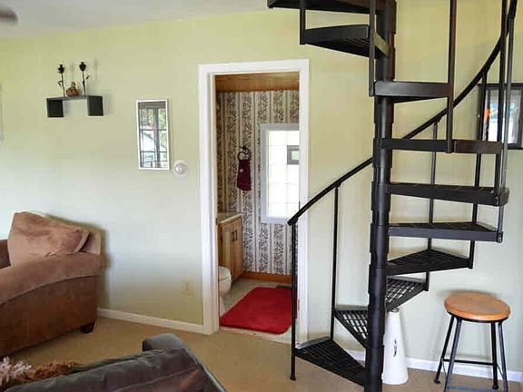 Beautiful home on full recreational lake. Main floor has kitchen with a wood burning fireplace, dinette, living room with walkout porch, and full bath. Spiral staircase leads to second floor master bedroom with large closet surrounded with windows overlooking lake and a patio door to walkout porch. Included is a 5 year old roll out 100' pier and a 22' fully equipped Pontoon Boat with 45 hp motor.