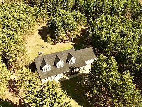 Privacy...Acreage...New Roof in 2019....Easy Access to I-39 North or South. Newer construction that checks all the boxes: Main Level Master Suite with Walk In Closet, Soaker tub and walk-in shower. Main floor laundry with half bath. Covered porch. 3 BIG Bedrooms, and nice storage opts. Deer stand and wide trails already in. Sportspersons' delight: snowmobile trail access, near lakes and river. Zoning= 2 AC Residential, 3 AC Undeveloped, 5 AC Productive Forest.