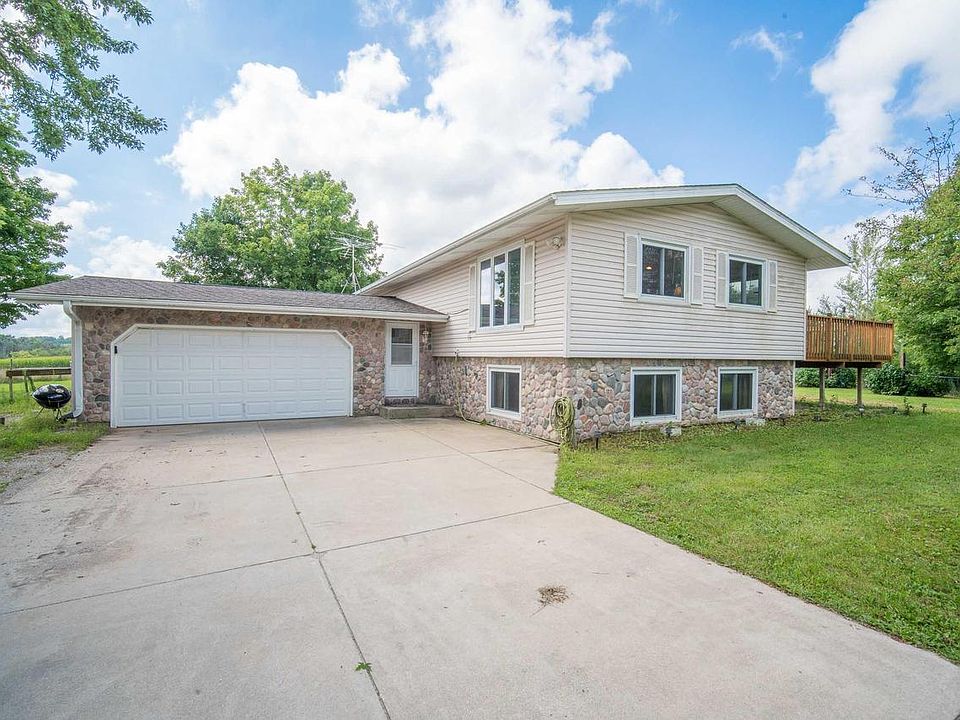 5.1 ACRES OF BEAUTY IN THE KETTLE MORAINE. 1.5 MILES TO HORSE TRAILS,HIKING,BIKING, AND THE SNOWMOBILE TRAIL IS RIGHT NEXT TO THE PROPERTY. 3 BEDROOM, 2 BATH BI-LEVEL WITH OPEN CONCEPT UPPER LEVEL KIT/DINING/GREAT RM. KITCHEN FEAT. MAPLE CABIINETS, ISLAND W/BREAKFAST BAR, AND RECESSED LIGHTING. PATIO DOORS OFF DINETTE TO OVERSIZED DECK. TWO LARGE UPPER BEDROOMS AND REMODELED BATH . LOWER LEVEL FEAT. BIG FAMILY RM, 3RD BEDROOM,UTILITY RM/FULL BATH, AND DEN. HUGE ATTACHED GARAGE AND A 45X63 POLE BARN FOR HORSES OR ?. ELECTRIC FENCED IN AREA, 5 BOX STALLS, AND AUTOMATIC WATER SYSTEM FOR YOUR ANIMALS. ENJOY THE GORGEOUS VIEWS AND PRIVACY. JUST OUTSIDE OF KEWASKUM