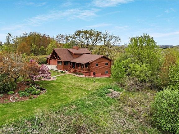 Breathtaking views from every window. This stunning log home sits on a bluff overlooking 29.5 acres of wildlife and mature trees including oak and black walnut. Enjoy excellent hunting from your own property. Everything you need on the first floor including laundry. Beautiful lofted master suite with sitting area and gas fireplace. Open concept with plenty of room to entertain indoors or out. This home has been meticulously maintained and features many recent updates.