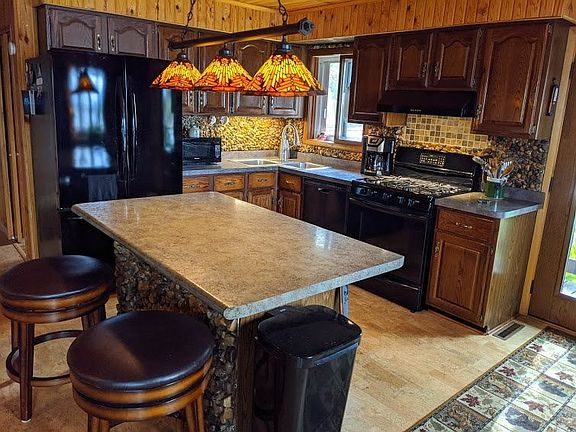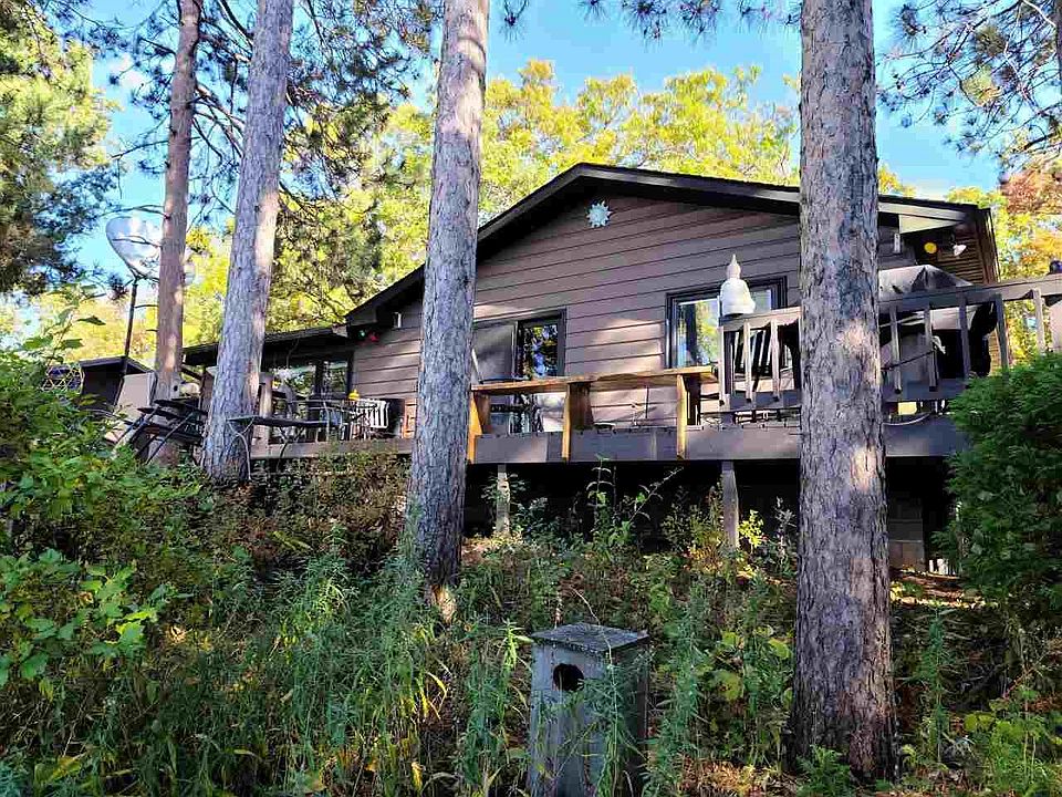 This is a rare find. Lake home with acreage and Pole building on its own lot. Pine Lake is a full rec lake. 163 Acres by 115 ft in depth. (Currently with the high water levels this lake is on no wake until water level goes down.) This home offers West views (Beautiful sunsets). Wonderful views from the Living room, Kitchen and Dinning room. Nice deck that over looks the lake. New Septic installed in 2014.