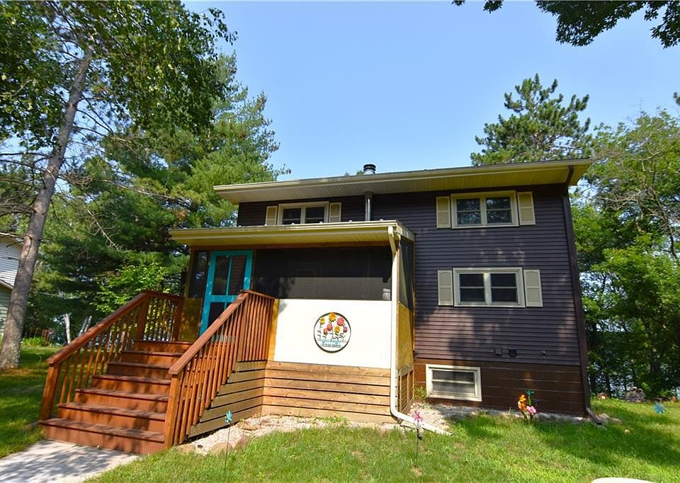 Enjoy beautiful views of Fireside Lake at this adorable cabin. The home combines cozy lake house style with touches of vintage charm creating a truly comfortable property to enjoy year round. Lake views are maximized by large windows, and a patio door leads to the recently stained lakeside deck. There are 2 screen porches and a lovely lakeside firepit for those cool summer evenings. The steel roof, siding,windows, doors, deck, and porch were all installed between 2009-2013. Current owners completely finished the basement (except utility room) with family room, full bath, tile floors, wet bar, and large laundry room. Many other updates to entire home including flooring and paint. The semi private lot has a gradual approach to the water and tons of wildlife. Fireside Lake is a fully recreational lake with fantastic fishing, swimming and boating. You can navigate all the way into the Chippewa River with a canoe or kayak. Located on blacktop road just 45 min North of EC & 2 hrs East of MSP