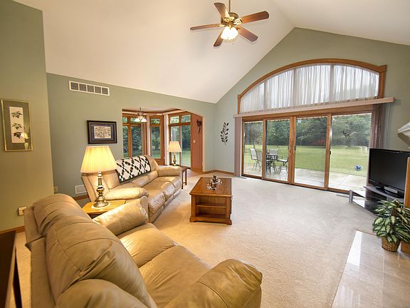 Beautiful, maintenance free 3BR, 2.5BA ranch on over a 2 acre tree-lined lot! You will love the large windows beaming natural light, GFP, vaulted ceilings & easy flow for entertaining. Cooking is easy in this country sized eat-in KIT w/HWF's & ample cabinet/counter space. Retreat to your master suite w/vaulted ceiling, WIC & private BA w/whirlpool tub & stall shower. Step saving 1st fl laundry. Added living space in LL RR w/kitchenette, half BA & WIC. This home features 6 panel doors, circle top transom windows, whole house surge protector, RO filter, newer furnace & A/C, central vac & extensive alarm system w/infra red detectors. Take in nature on spacious patio w/retractable awning & enjoy wildlife creatures in park-like backyard. Attached 3.5 car GAR w/room for storage. View the video!