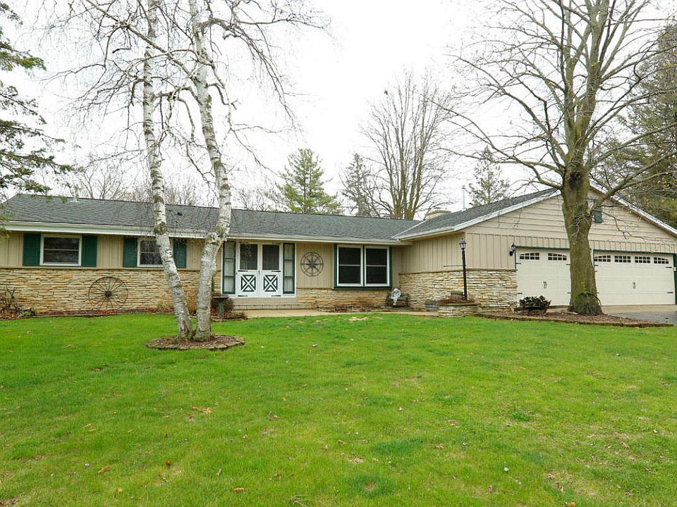 Incredible Fountainwood Ranch set on a mature, private cul-de-sac lot. Extensively updated by the current (2nd) owner. Double door entry welcomes you to the large open living room/dining room. Remodeled kitchen with granite counters, tile back splash and stainless appliance package. Cozy den with fieldstone natural fireplace! Entertain with ease in the bright family room with 3 patio doors, tile floor & wood burning stove. Updated baths & roof, replacement windows, newer patio, well pump, 200 amp electric, & more. HUGE, HEATED, FINISHED 38x28 attached garage. Don't let this one get away!