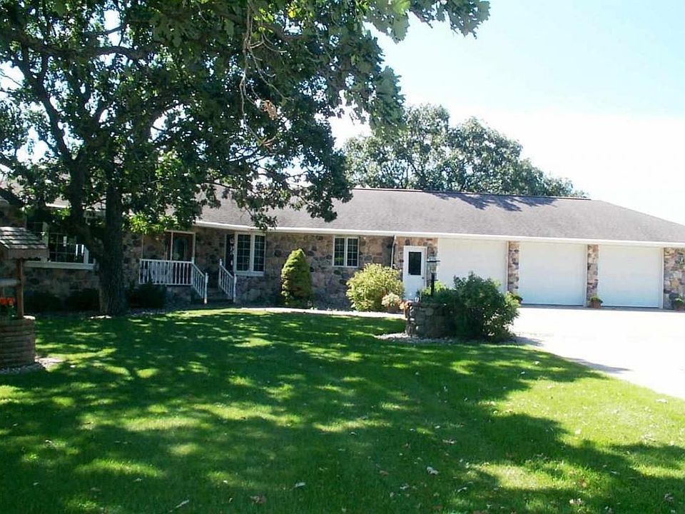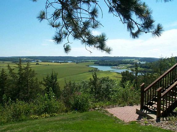 Stunning panoramic views of the countryside from this expansive 4614 sq/ft ranch home nestled atop a high ridge!! Beautiful gourmet kitchen updated w/wood flooring & stainless steel appliances! Main floor includes an ornate open stairway, formal dining w/French doors, spacious living room w/fireplace, master suite w/walk-in shower, office, laundry & dinette. Walkout lower level w/rec room, 3 additional bedrooms, fireplace & a workshop! Awesome full length deck off the dinette to enjoy the gorgeous scenery!
