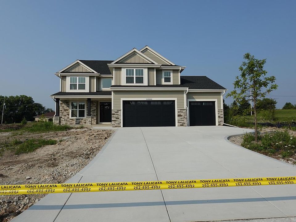 4 bedroom/2.5 bath/flex room/elite features 2-story. Basement has drain/vent rough-in for future full bath and 1 egress window. Corner ceramic tiled walk-in shower/2 shower heads/quartz vanity tops in master bath. Double sinks master & family baths. WIC's all bedrooms/2 in master. 9'first floor ceilings/tray ceiling in master. Kitchen cabinets w/hardware & crown moulding/quartz countertops/ceramic tiled backsplash/island/pantry closet. Mudroom w/drywall lockers & closet. 2nd floor laundry w/closet, cabinets & sink. Wide millwork/paneled doors/lever-style door handles. Front entry door w/double side-lights/transom window/keypad deadbolt. Hardi-plank siding. 3-car garage w/large storage area(12'6'' x 9'6''). Includes exterior improvements as installed.