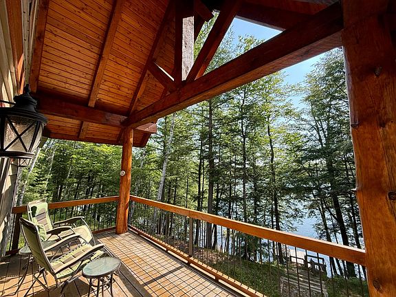 Live the Northwoods dream in this beautifully crafted lake home on the shores of Long Lake, which connects to Bass Lake for over 230 acres of pristine water and 7+ miles of shoreline to explore. This 2-bedroom, Loft, 2-bath home offers two main-level bedrooms, including a spacious primary suite with a private bath, and a unique loft bedroom. The open-concept design features knotty pine cathedral ceilings, custom woodwork and cabinetry, granite countertops, and a beamed entry that showcases the home’s character and craftsmanship. Vinyl plank flooring flows throughout the home, complemented by a striking custom wood front door and stone pillars. The walk-out basement is fully drywalled and ready for your finishing touches, offering tall ceilings and access to a lakeside patio. With 156 ft of sandy frontage and space to add a garage on the large private lot, this home offers both beauty and potential. Harrison Hills, you’re just minutes from some of the best trail systems in the state.