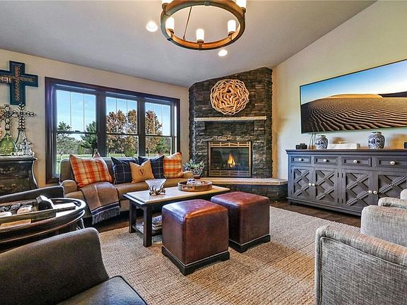The ipitomy of luxury & quality workmanship throughout, this Steen Construction home offers a generous entry w/an open, iron/wood custom staircase. Drawing you further inward, large windows overlook the patio, flagstone path to the firepit, professionally landscaped backyard & unobstructed views of the Osseo golf course. A floor-to-ceiling stone fireplace in the living area flows smoothly into the dining area & kitchen. An impressive kitchen w/black stainless appliances, wine fridge, large natural stone island & walk-in pantry. Laundry rm, mudrm & WIC for your "every day living" items. Master bedrm ensuite w/WIC, 2nd & 3rd bedrms & 2nd full bath complete the main floor. Family rm w/built-in snack bar & beverage fridge, ensuite bedrm w/a 9'x5' WIC, 5th bedrm complete w/ a 12x8 WIC & additional rm perfect for an office finish up the lower level. Garage is insulated w/hot & cold water hookups. Direct access to snowmobile & ATV trails & a brief 20 minute drive to Eau Claire!
