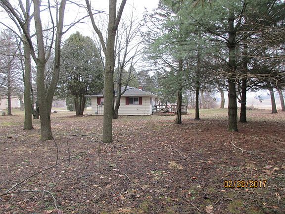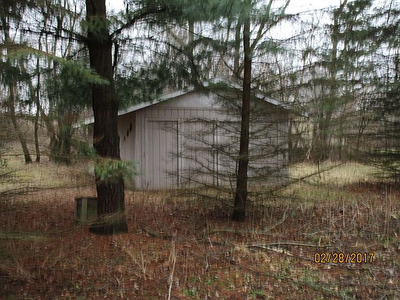 CASH ONLY SOLD AS IS! Chance to build some equity with this 2+ bedroom ranch situated on 1.5 partially wooded acres! Great country views from back yard! 2 car attached garage extra deep/wide with high overhead door! LARGE 16X24 STORAGE SHED back in the trees. Inside needs work. Home will NOT qualify for a loan. Bid to have mold professionally removed available along with well/septic report. Well & septic are failed. Leaks in water lines to heat registers.