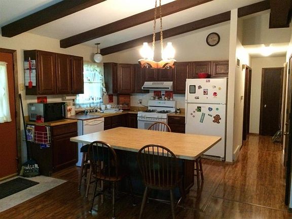 Cozy yet roomy AFFORDABLE home with DEEDED LAKE ACCESS on a quiet dead end street. Vaulted ceilings in window lined great room which opens to large deck overlooking mature trees and lake. Hookup for a sm wood burning stove. Expansive LL could be used as a bdr or family rm, walk out to lg beautiful yard with fire pit, and across street from private lake access. New roof 2005, new windows 2009. Convenient to Devil's Head, Cascade Mt., Devil's Lake, WI Dells, Baraboo, Madison and I-90/94/36 Rm sizes est.
