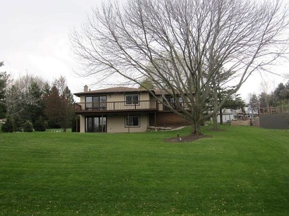 Immaculate exposed ranch overlooking Lake Wisconsin. Settled in a quiet rural neighborhood, with rare DEEDED LAKE ACCESS and boat slip availability (per seller), just across the road. Major updates include roof, windows, siding, gutters, deck and carpeting. Lovely kitchen with granite counters, custom pantry, in-floor heated tile and corner dinette. Wood burning fireplace and abundant light via oversized patio doors. Open stairway leads to walkout lower level.