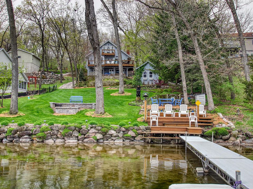 Welcome to Blue Spring Lake! Enjoy this updated 4 BD, 3 BA lake home in time for summer. So many updates (see document tab) make this home move-in ready. Lovely park-like yard has colorful perennials, stone path to the lake for ATVs or golf cart, gardening shed, fire pit, stone seawall, and 65 ft. of clear, sandy frontage! The garage is heated with full walk-up attic for tons of storage. Beautiful lake views from nearly every room. The master suite even has a private lakeside balcony. Spacious bath features an air tub, separate shower, & skylight. Whether you are looking for a second home or primary residence, this property has it all!