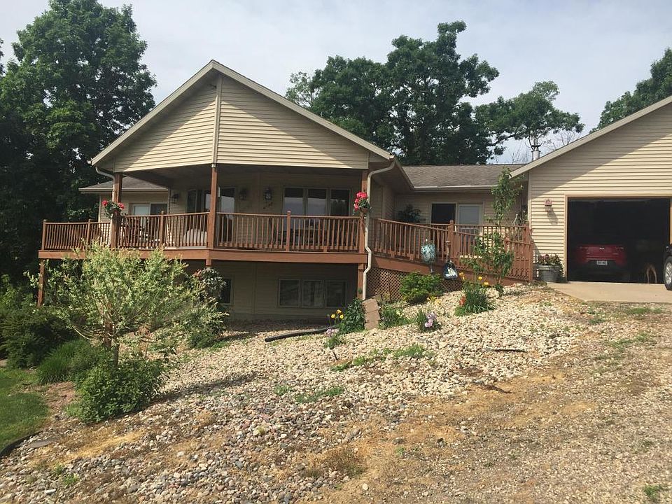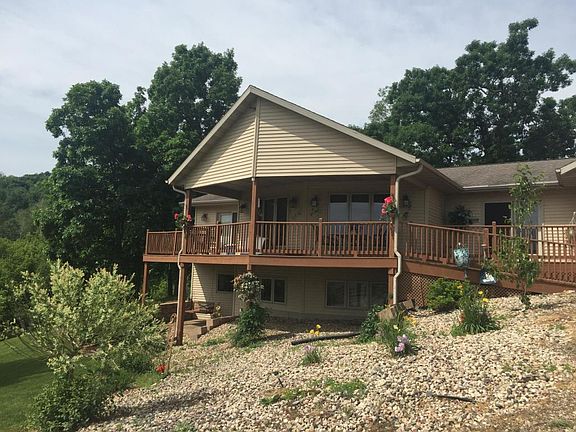 Spectacular 5 bdrm, 3 bath walkout ranch nestled in a quiet coulee 2 miles out of Bangor. The main flr has large stone natural firepl, 2 ample bdrms, dining and kitchen. Laund off kitchen. LL has 2-3 more bdrms full bath, office, full kitchen laundry facility and storage. Could be a great area for mother-in-law quarters or a great party room for football games. 38x26 attached garage with woodburning stove which heats garage and home. Home can be purchased with different amounts of land 2 acres up to 92 acres. Call for pricing options. This option is the house with 92 acres and barn