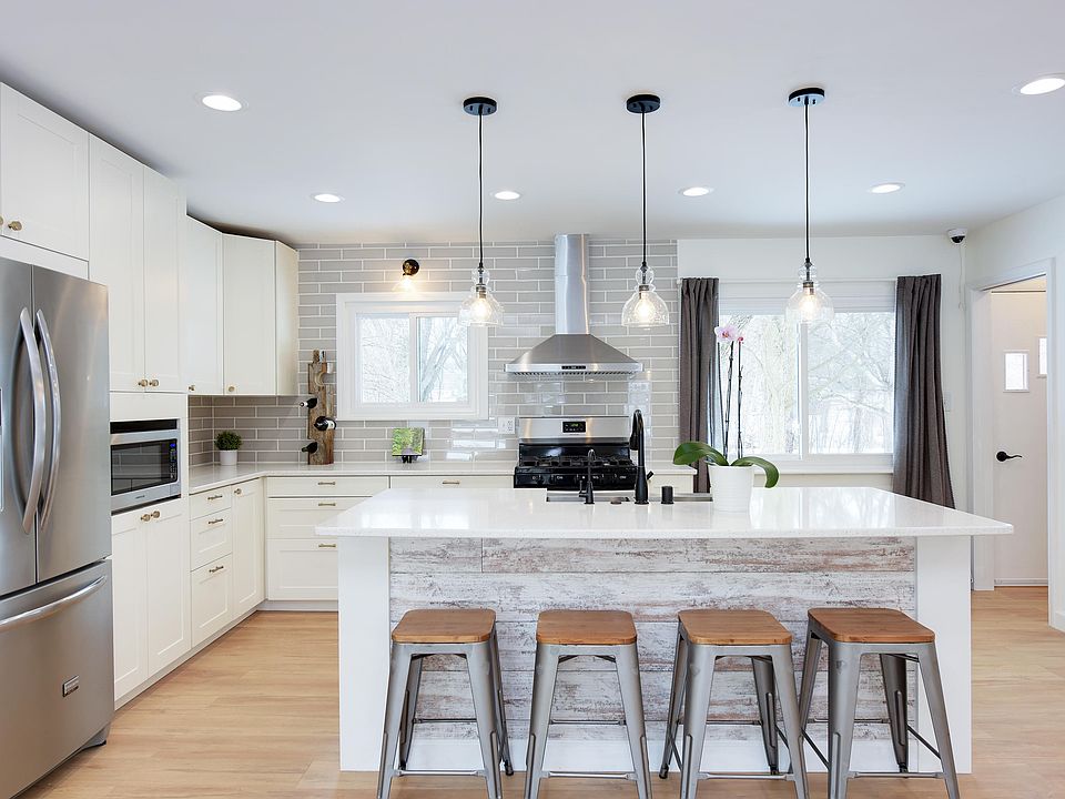 Meticulously renovated & upgraded! Fall in love with this amazing mid century ranch that has been modernized by a skilled craftsman, with care and attention to detail that you rarely see! Outstanding, open design kitchen with quartz counters, white Shaker cabinets, center island with snack bar and farmers sink, pendant & recessed lights, stainless appliances and more! Spacious living room features laminate flooring & recessed lights. Luxury master bedroom with WIC, ensuite bath offering walk-in shower, double vanity. Mudroom off garage. Split bedrooms floor plan with all new carpet, remodeled bath. New windows, roof, central air, electric, all flooring, all fixtures on main floor, freshly painted thru-out. This house is completely turn key and ready for you!