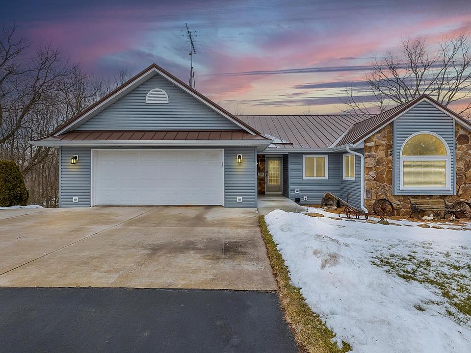 Enjoy serene country living while still being close to conveniences! Welcome to this wooded with trails 5 ac oasis on the Rock River. Front door looks straight through the large family room window to your backyard & riverfront! Lovely, open kitchen/dining was updated in 2016. Family room is generous but welcoming. Bedrooms are spacious with plenty of closet space. The primary offers a sunroom that could be converted into a primary en suite bath or quite the closet! Walkout lower level features a bedroom & another full bath, plus a working fireplace that can heat the home! There's plenty of storage too. Don't forget the bonus office with another walk out, PLUS the lower garage/workshop which has double walk out doors to drive in the rider! Too many updates to list! See Seller Updates & FAQ!