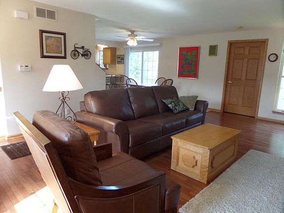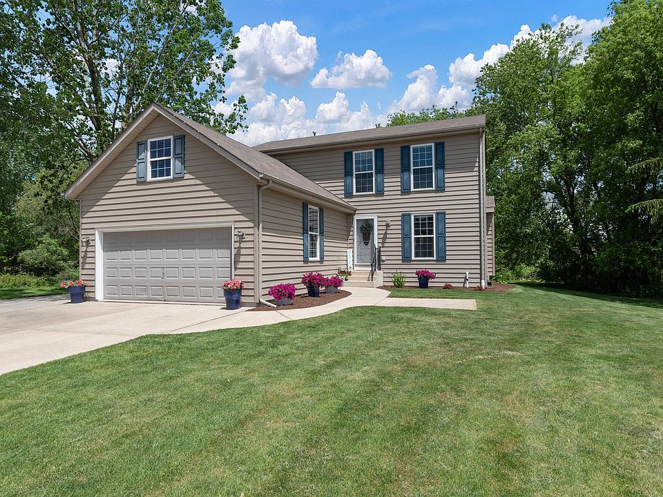 Welcome home to this 5 BR, 3.5 BA home! Step inside & find a desirable open concept floor plan. Great Rm offers HWF's, gas FP & overlooks the kitchen & dinette. Kitchen includes all SS appliances, quartz counters, tiled backsplash, walk-in pantry & breakfast bar. Sliding glass doors off dinette lead to patio & private backyard. 1st floor laundry w/folding table, half bath & BR/den complete this floor. Hardwood floors in all BR's. Large master suite w/walk-in closet & private bath. Finished lower level offers even more living space! Lower level also includes Family Rm, bedroom & full bath. Exterior offers wooded backdrop & a bonus parking space. Just steps away from Bluhm Farm Park. Just move in & enjoy!