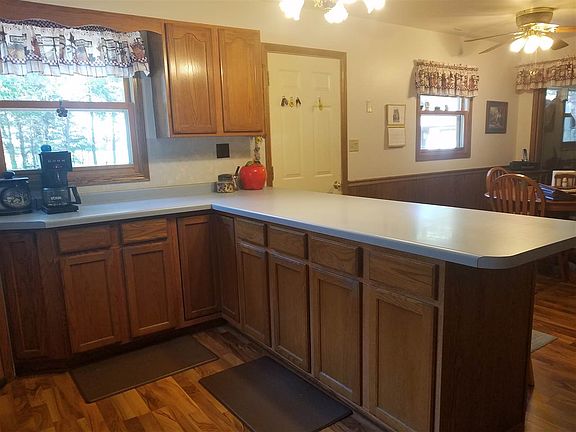 COUNTRY PARADISE!!! Privacy and serenity abounds this property. Many updates have been made. There is 40 acres of DNR land to the west and 62 acres of DNR land to the north, located on ATV trails. Good hunting for those that love the outdoors. The 2 bedroom home has an open layout with a 24x26 great room for entertaining,a u shaped kitchen with attractive laminate flooring, honey cabinets. sunroom can be used 3 seasons, does have a vent and 3 access doors. Steel ceiling, attic access and knotty pine walls.Laundry room has extra shelving, furnace and water heater.Looking for a man cave? It`s here with an insulated, heated 24x28 garage that has screens and so much more. Pole shed/garage is 40x30, concrete floor. A lot of extra storage. Carport is an asset as a wood shed near the Central Boiler wood stove.(2008) Steel roof was done in 2010. Exterior is wood/cedar T1-11. Conventional septic and well were installed in 1993, 3 bedroom capacity. Well is 4' casing, 68' deep. Circular asphalt driveway has been recoated every 2 years. There is an abundance of perennials with nice landscaping.