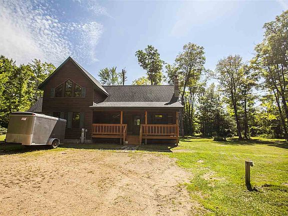 Tranquility and privacy can be found with this newer log sided home sitting on a 40 acre wooded lot. This open concept home has well-maintained pine floors throughout, vaulted ceilings, a gas fireplace in the great room, tons of built-ins, and a huge kitchen with all of the appliances included. The open staircase will bring you to an upstairs master suite with a converted walk in closet or what could be another bedroom. The front porch and back deck give the log home nice character.There is a massive detached garage that is insulated, with a place for a wood burner and tons of storage. The 40 acres of land is mainly wooded, but does have numerous cut trails throughout to make deer hunting easier and to cater to snowmobiles, four wheeling, and hiking. There are also two large fields on the property and a small pond. If you're looking for land and privacy, this is an outdoorsmen's dream! Call to set up an appointment today!