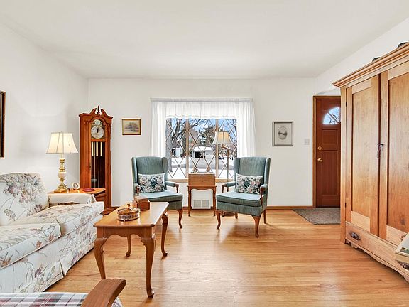 Lovingly maintained, one-owner home has gorgeous red oak hardwood floors, updated kitchen with pullouts in lower cabinets, updated bath with walk-in shower and full glass doors, full spectrum lighting; newer room darkening shades in master bedroom. Full, clean basement awaits your rec room! Easy care brick and vinyl exterior; updated windows; large deck to relax on and enjoy the spacious backyard with mature trees providing cooling shade in the summer; ample room for your gardens, too! The garage currently has a one car overhead door but rafters and concrete are there should you decide to park two cars inside. Truly an outstanding home -- make it your's before it's too late! Room sizes per blueprints to be verified by buyer if important.