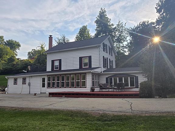 Step into timeless charm with this beautifully updated farmhouse nestled on 2.88 picturesque acres, complete with a creek running thru the property.This 4 BR, 2 bath home offers the perfect blend of historic character and modern comfort.Inside you'll find a spacious layout featuring a large kit, formal din rm, and a open oak staircase.The main level incl a convenient laundry rm, full bath and access to a deck overlooking the private yard.Upstairs the 2nd flr boasts 2 bed rm a full bath & cozy sun porch for morning coffee.The 3rd flr offers 2 addtl bed rm and a loft space great for a home office. 2.5 det. GA, numerous updates thru out the home, and a peaceful, private setting.Whether you're looking for a quiet country escape or a place to hunt this property is a rare gem!