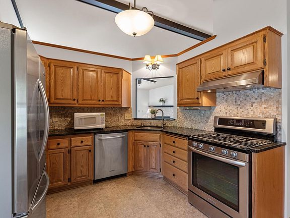 No Condo Fees! Freshly painted and full of natural light, this ranch-style condo offers an inviting open concept layout with soaring cathedral ceilings. The spacious living room features a cozy gas fireplace and patio doors that open to a private backyard and deck, perfect for outdoor entertaining. The kitchen features granite countertops, a stunning stone backsplash, stainless steel appliances, and a charming dinette area. There is also a dining area off the living room. The primary suite includes ample closet space and a step-in shower. Enjoy the convenience of main floor laundry, hardwood floors, and a serene cul-de-sac setting. Bring your ideas for the unfinished basement. Whether you're downsizing or a first time home buyer, you need to check out this condo.