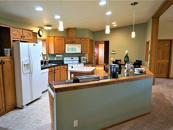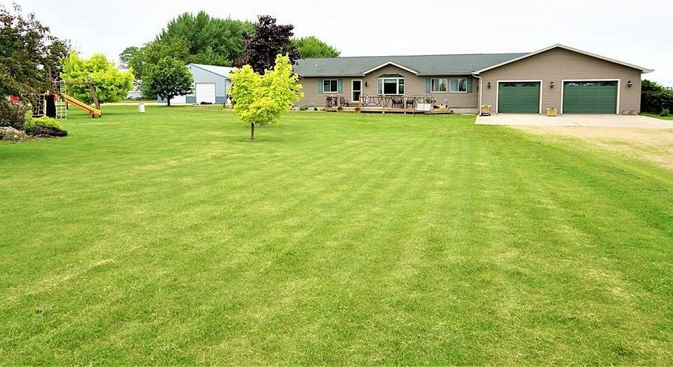 LG 1 story home w/ full bsmt on 4.93 acres & set up for horses! 5 bdrms & 3 bath. 36x36 attached heated garage. 53x32 insulated shop w/ in-floor heat rough in (needs boiler). In-floor heat in bsmt & garage! Wet bar. Lower level has wet bar, family rm, rec rm, bdrm, bath & office. Nice pasture w/ fencing. New dishwasher, furnace & boiler. Seller to include wet bar refrig. & bar stools, pool table, flower boxes, chicken coop, hay hut, water troughs. HBC internet. Shed has 600 amp service!