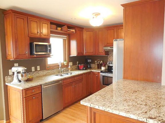 Amazing open concept! Huge 2 story Great Room opens to the newly remodeled kitchen with all newer appl incl, granite countertops, and awesome backsplash! Sliding glass doors to the huge deck and yard! 1st flr MBR suite with WIC and updated bath. Upper offers 3 BRs plus amazing newly updated bath w/dual sinks and granite! (4th BR could be MBR as well!). Finished LL offers tons of space plus a dry bar! Clean storage area and utility room. 2 car attached garage! Nice landscaping and excellent curb appeal!