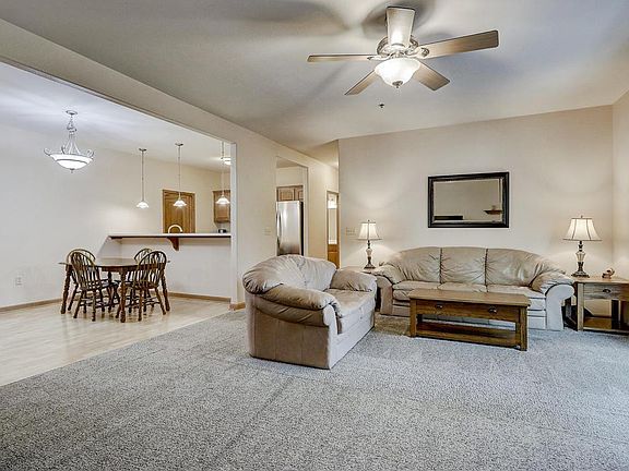 First Floor Ranch unit. Level entry from outdoors and garage great for easy accessablility. 2 Bedrooms and 2 full baths 2 car garage with shelving units included. Huge great room with gas fireplace and patio doors to the peaceful private area. The kitchen and dinette has a large breakfast bar and appliances are included some have transferable warranties. The master suite has a full bath with a jetted tub and large walkin closet. The laundry features with full size washer and dryer that are included. The lower level has a good size finished rec-room and wonderful storage room with shelving units. This unit is neat as a pin. Move in condition! Call for your private showing.