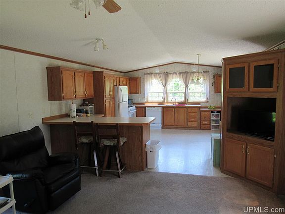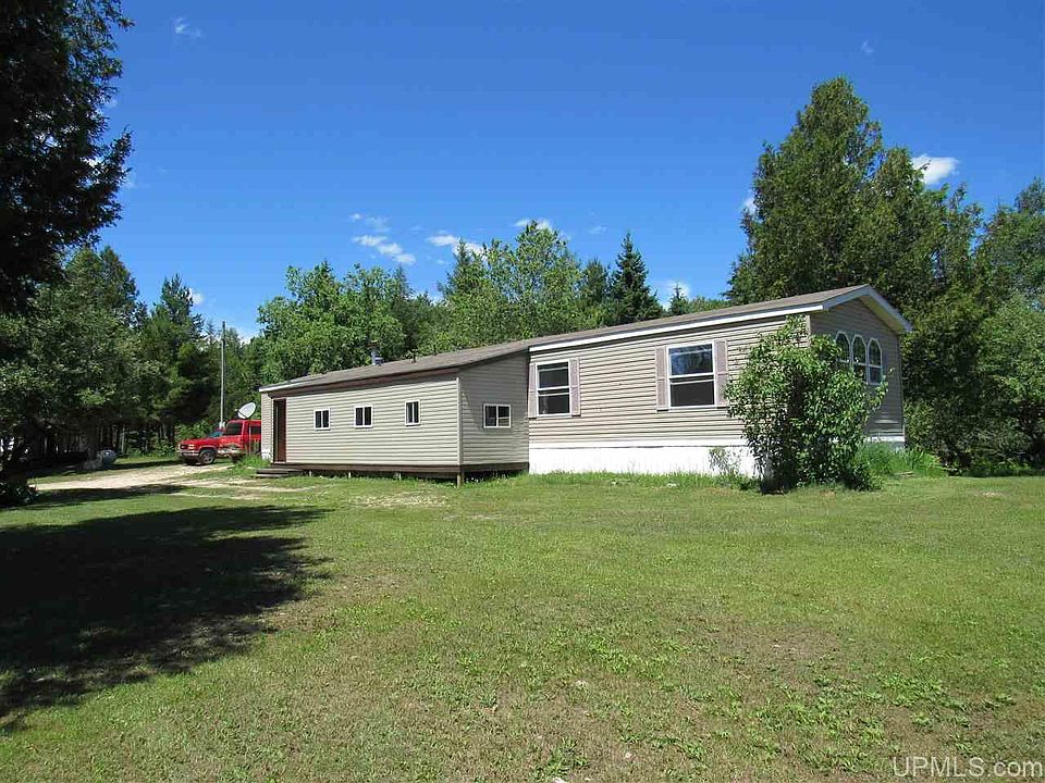 Rural home on McConnel Road near Curtis and the Manistique Lakes area on 4.73 acres. The 3BR home is 16 x 80 and has a 8 x 32 entry addition great for storage and keeping things tidy and out of the weather. There is a spacious open kitchen, dining and living room area with great views of the large landscaped yard that is loaded with fruit trees and flowers. Utilities are reasonable and with low interest rates the cost of ownership is very affordable. Drilled well and septic, Cloverland Electric, and propane heat. Several outbuildings and a garden area allow active use of the property. Shopping and dining are just a few miles away in Curtis. Shown by appointment only.
