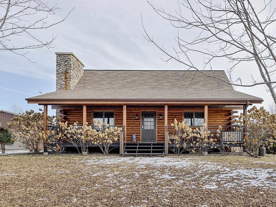 Peaceful, country living in this picturesque "Mountain Log Home" with 6 acres of serenity. This 2 bedroom, 2 full bathroom, is dialed-in to all your needs. Open concept kitchen/dining/living room. Showcase kitchen has had a major makeover with beautiful cabinetry and Granite countertops, and appliances. Floor, to cathedral ceiling, with massive real stone fireplace, hardwood floors. Dining room sliding doors open to bright sun-room. Continuing up the beautiful open staircase to the loft, is another massive bedroom with rustic design overlooking the fireplace. Main floor bedroom and bath with custom walk in shower. Main floor laundry. Shingles on roof were replaced in 2018 with 50 year warranty. Asphalt driveway.,Full Baseement with full Bath.