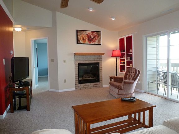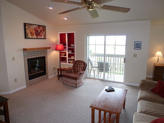 This well-maintained second floor unit boasts a spacious great room with a gas fireplace and cathedral ceilings, featuring a built-in bookcase and a bonus alcove great for an office or work area. White woodwork throughout. Private balcony provides beautiful views of Muskego. Eat-in kitchen includes appliances, pantry and breakfast bar. Plenty of space for storage. Washer/dryer in-unit. Conveniently located close to shopping, library, schools and the park. Sq.ft. wire data. Call today!