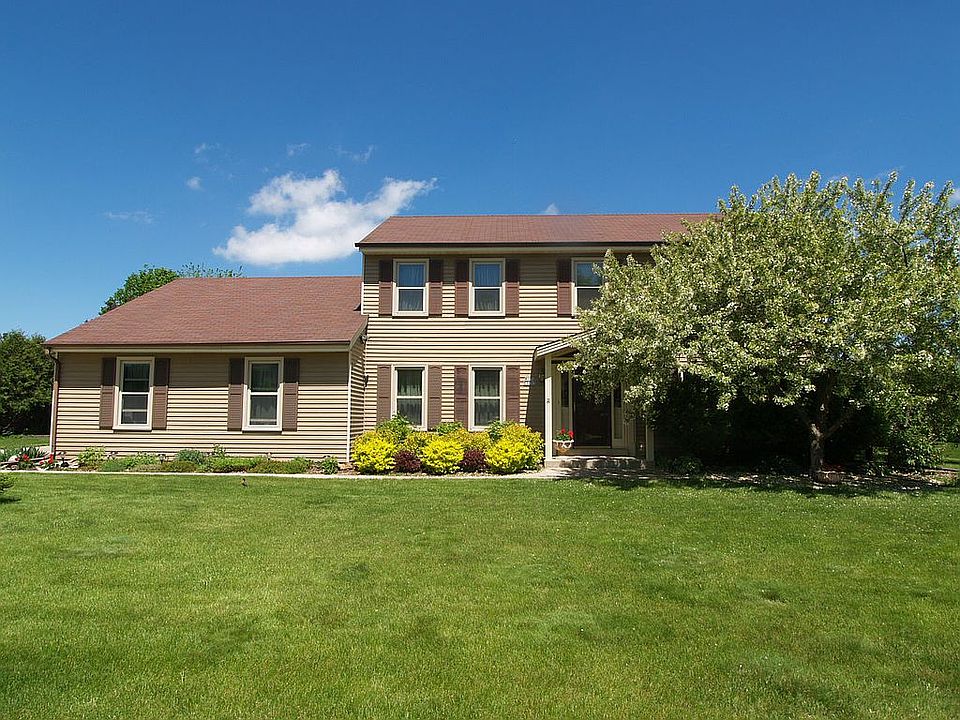 Main floor: living room with pocket doors leading to family room with natural fireplace, very spacious kitchen with island, planning desk, and dinette, formal dining room, half bath, laundry room, and bedroom with its own full bath. The upper floor has: master bedroom with his and her separate walk-in closets and bath with whirlpool tub and walk-in shower, two extra bedrooms and a full bath. Lower level has: extra room/office, full bath, rec room, and work room. Back yard has a shed and patio. Amenities include: hardwood floors on main floor, crown moldings, updated windows, and granite counter tops in kitchen. Wonderful subdivision in Muskego.